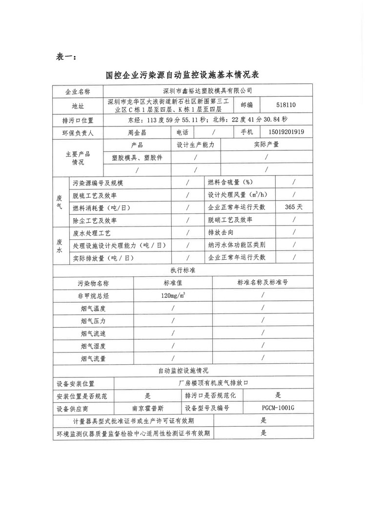 信息公示:深圳市鑫裕達塑膠模具有限公司煙氣驗收報告 ...